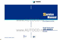 Заводская инструкция по ремонту крана Тадано - Tadano Rough Terrain Crane GR-800EX-3 содержит подробную информацию о сборке и разборке агрегатов, процедур диагностики, электрические схемы, моменты затяжек и др. Информация доступны на Английском и Японских языках. Если модель поставлялась только на локальный рынок Японии инструкции будут на Японском языке, книга с электрическими и гидравлическими схемами будут на английском.