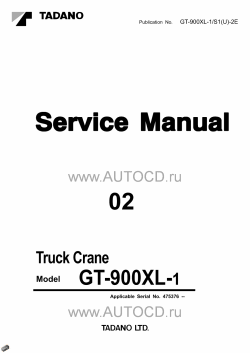 Заводская инструкция по ремонту крана Тадано - Tadano GT-900XL Truck Crane содержит подробную информацию о сборке и разборке агрегатов, процедур диагностики, электрические схемы, моменты затяжек и др.