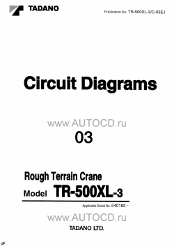 Заводская инструкция по ремонту крана Тадано - Tadano Hydraulic Crane TR-500XL-3 содержит подробную информацию о сборке и разборке агрегатов, процедур диагностики, электрические схемы, моменты затяжек и др.