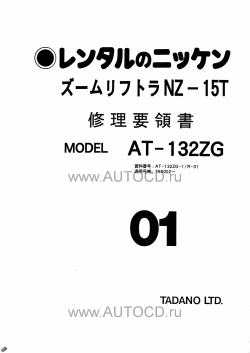 Заводская инструкция по ремонту крана Тадано - Tadano Aerial Platform AT-132ZG-1 содержит подробную информацию о сборке и разборке агрегатов, процедур диагностики, электрические схемы, моменты затяжек и др.